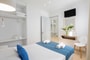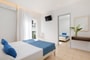Family type B rooms consist of two separate bedrooms which are adjoined by an interconnecting door, and feature 1 or 2 bathrooms. The room is furnished with either a combination of 4 single beds, or one double bed and 2 single beds. Both family rooms combined range from 36 to 44 meters, and each bathroom constitutes approximately 2.5 to 3 meters. All rooms come with a private balcony or patio, which is not included in the room footage.